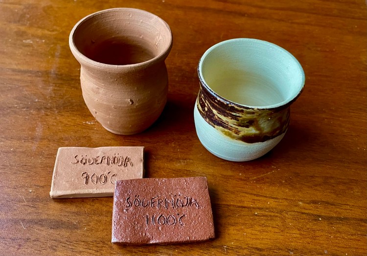 I juni 2023 fick vi kontakt igen. Då hade Alice drejat och bränt leror i olika temperaturer. Det visade sig att vi har en utmärkt fin lera som vid 900°C blir orange som tegel. Vid omkring 1200°C smälter den och blir till glas, dvs. den kan också användas som glasyr. Tydligen var den också utmärkt att dreja med rakt ur backen. Med andra ord ett prima lergods som kan användas till tegel, pannor, klinker, krukor osv. och dessutom till glasyr av desamma. Mycket trevligt!
