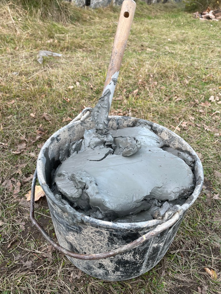 Utöver dessa spännande upptäckter genomförde undertecknad också experiment, men med lerbruk för att mura med. Huvudsakliga ingredienser är lera, sand, ko- eller hästskit samt någon armerande fiber. Många av våra äldre murstockar och grunder murades nämligen i lera, kanske inte ytputsen men för att foga samman tegelstenar och säckdra eller slamma kanalerna. I mitt eget fall bekräftades detta genom att lägga en bit gammalt bruk i en skål med vatten. Snart hade den löst upp sig med samma egenskaper som när huset byggdes för 115 år sedan. Lerbruk är ett fenomenalt material och jag ville reparera med gamla medel. Bevisligen klarar det också temperaturer över 1100°C.