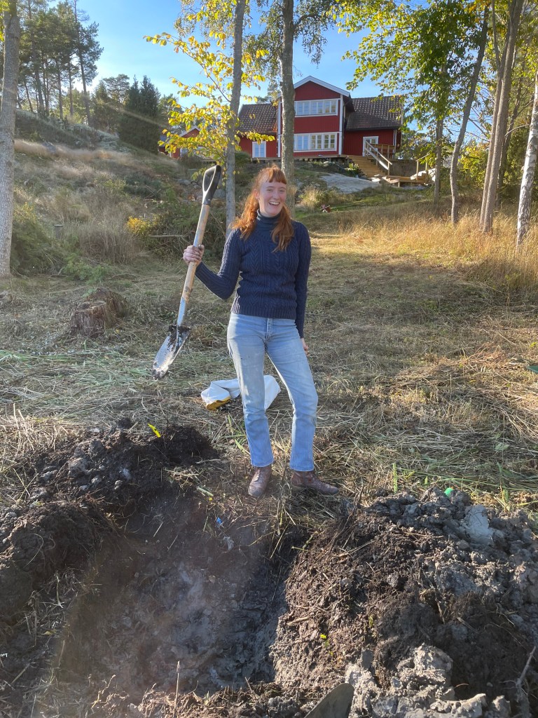 Sagt och gjort, i oktober dök Alice upp och Gabriel hade förberett genom att gräva hål i strandkanten. Strax under vassrötter och 30 cm jord dök den fina leran upp som ett grått smör, helt ren och mjuk. Alice fick med sig ett par hinkar och undersökningarna påbörjades.